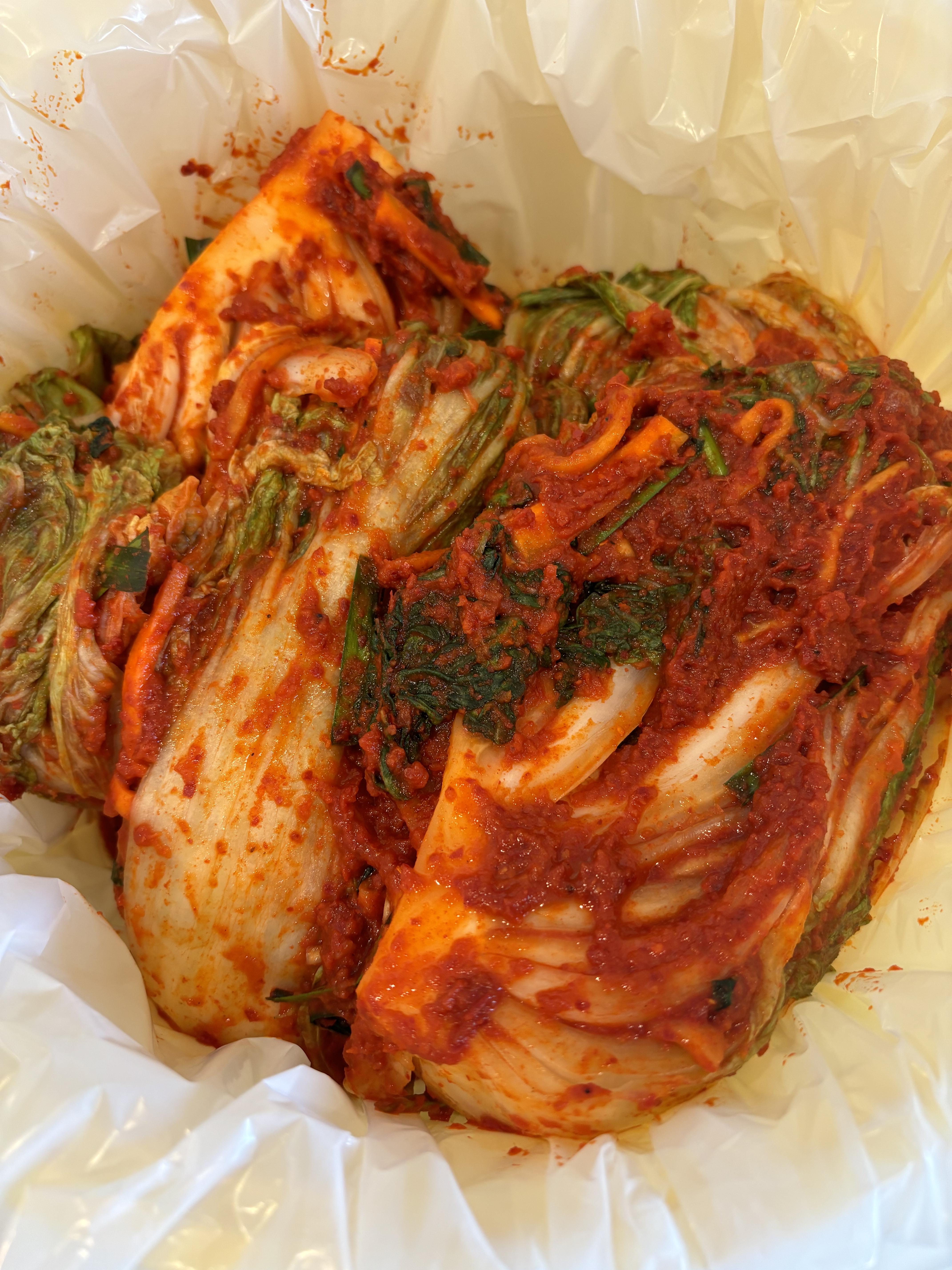 野菜がたっぷり入った、キムチ教室でも作っている白菜キムチ